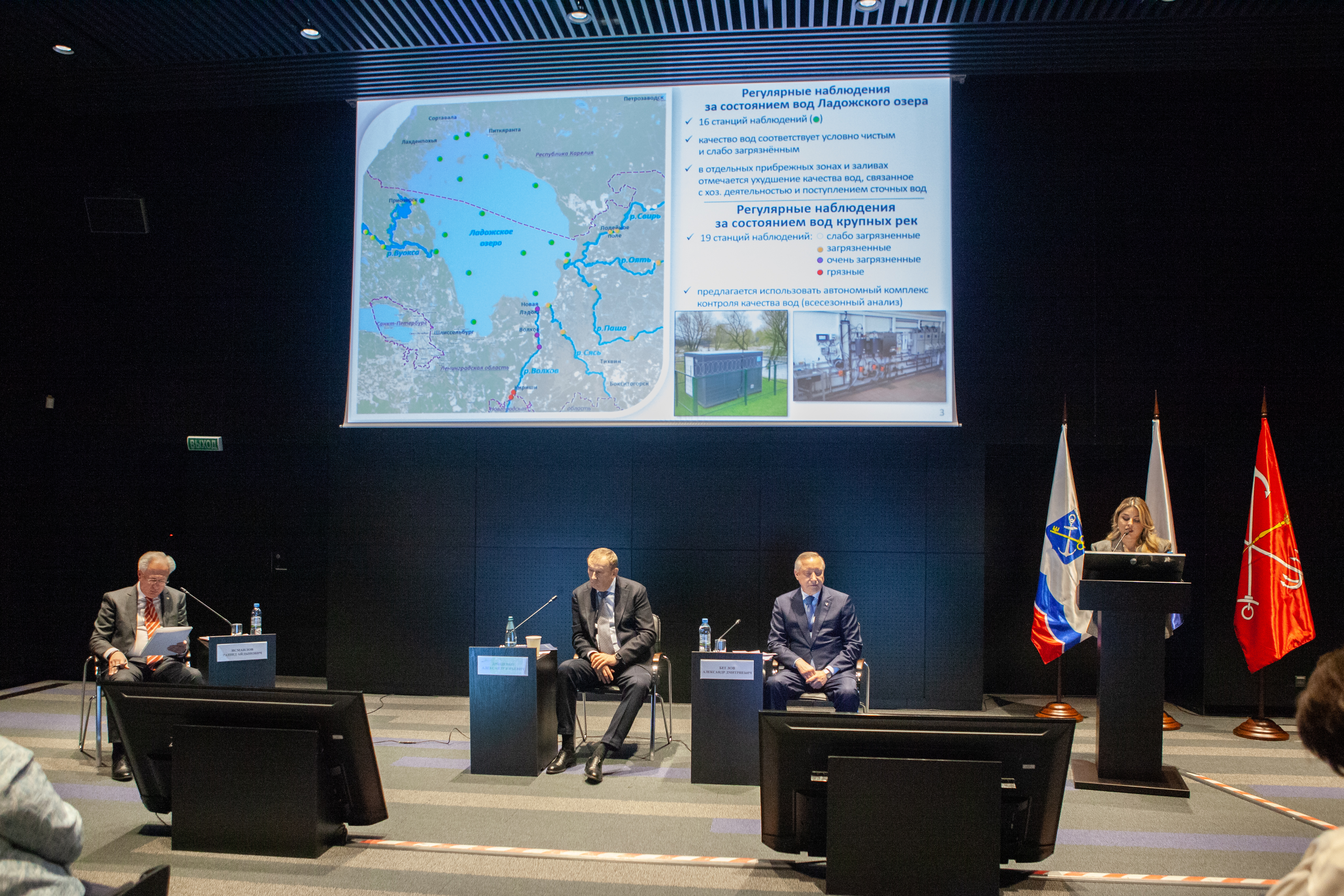 В обсуждении приняла участие Рамила Агаева - глава Комитета государственного экологического надзора Ленинградской области. Она выступила с докладом и представила актуальные данные о состоянии Ладожского озера. На текущий момент воды озера признаются условно чистыми или слабо загрязнёнными, однако все реки, впадающие в него, несут загрязнённые воды.